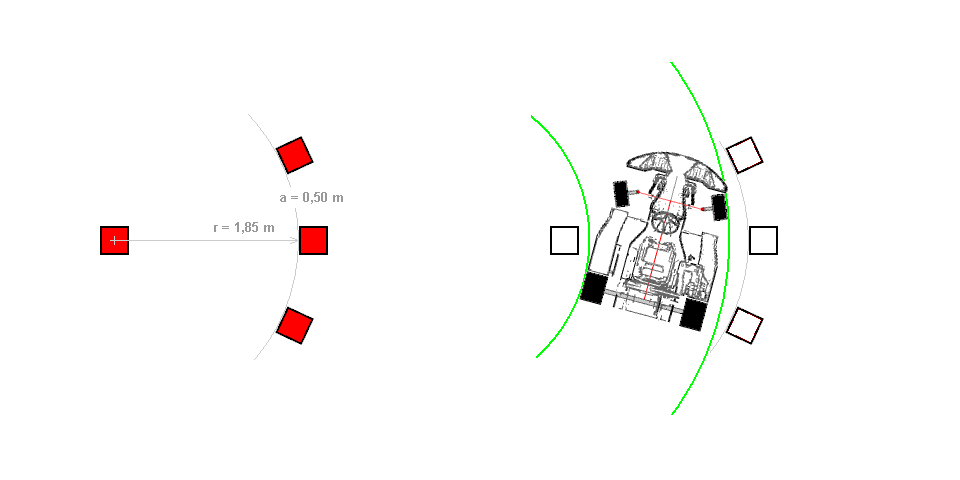 Radius vom Mittelpunkt der inneren Pylone 1,85 m