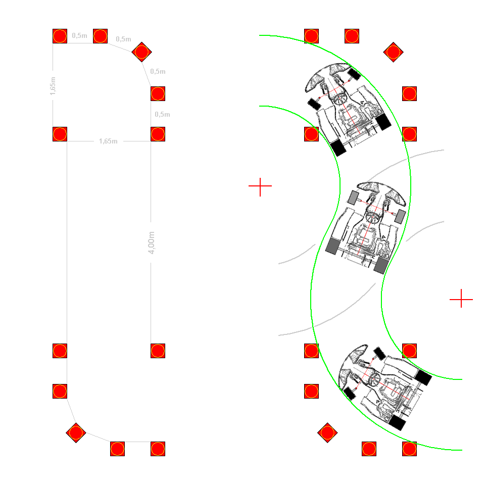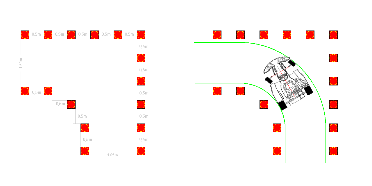 Diese Aufgaben können nur bewältigt werden, wenn über die Pylonenfüße gefahren wird.