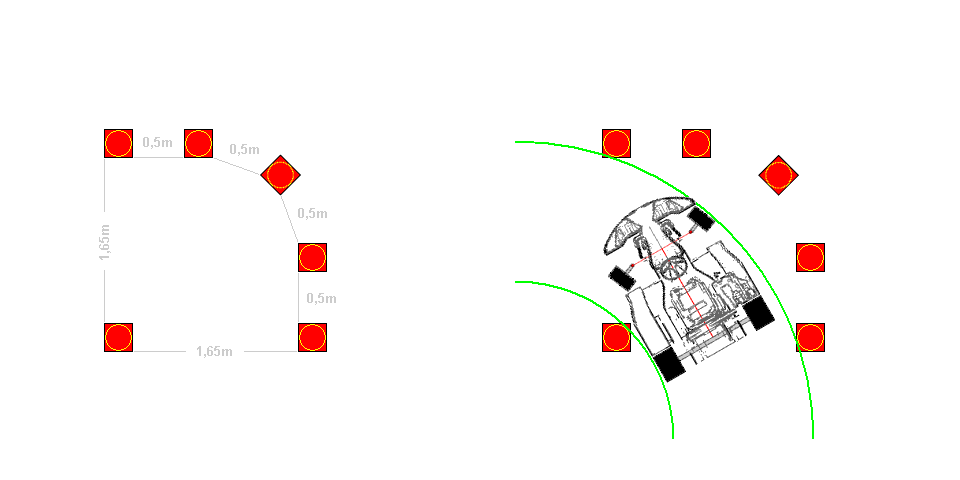 Diese Aufgaben können nur bewältigt werden, wenn über die Pylonenfüße gefahren wird.
