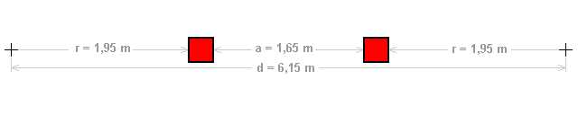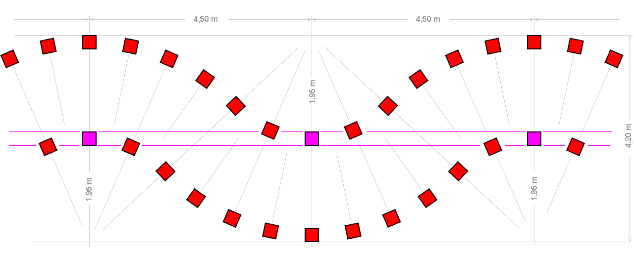 Zur Ergänzung können auch die Mittelpunkte der End-Pylonen einer symmetrischen 7er-Gasse ermittelt werden. Diese sind 4,50 m von den Kreismittelpunkten entfernt.